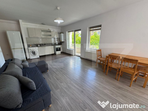 Blitz ofera spre inchiriere apartament cu 2 camere, situat in Floresti, zona Florilor. Acesta este pozitionat la parterul unui imobil cu 4 etaje. Cu o suprafata utila de 60 mp, apartamentul este spatios, decomandat, compartimentat astfel: living spatios cu bucatarie, dormitor, baie , hol si 2 balcoane, din care unul inchis.