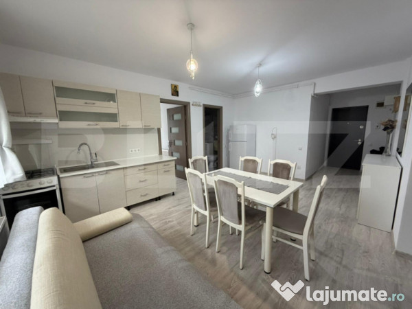 Blitz va ofera spre inchiriere un apartament de 2 camere, in zona strazii Urusagului. In proximitatea zonei exista acces pentru supermarket-uri, mijloace de transport in comun, parcuri, spatii verzi etc. Apartamentul este pozitionat la parterul unui imobil cu regim de inaltime P+3E. Suprafata utila este de 53 mp, iar compartimentarea semidecomandata se prezinta astfel: bucatarie open space cu livingul, hol, baie, dormitor, o camera pretabila birou si o terasa generoasa de 24 mp. Apartamentul este complet mobilat si se preda conform pozelor!