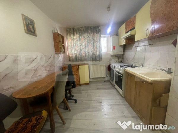 Apartamentul este practic compartimentat, oferind un spațiu confortabil și funcțional, ideal atât pentru locuit, cât și pentru investiție (închiriere sau activitate de birou/cabinet). Poziționarea la parter îl face ușor accesibil și potrivit pentru diverse nevoi.