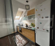 -bucătăria este separată de living printr-un geam sau o ușă glisantă, detaliu care asigură intimitate în timp ce păstrează senzația de spațiu deschis și modern;