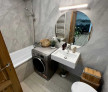 - Living generos cu bucătărie open-space și ieșire în grădină