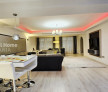 Living spațios cu bucătărie open space și zonă de dining elegantă