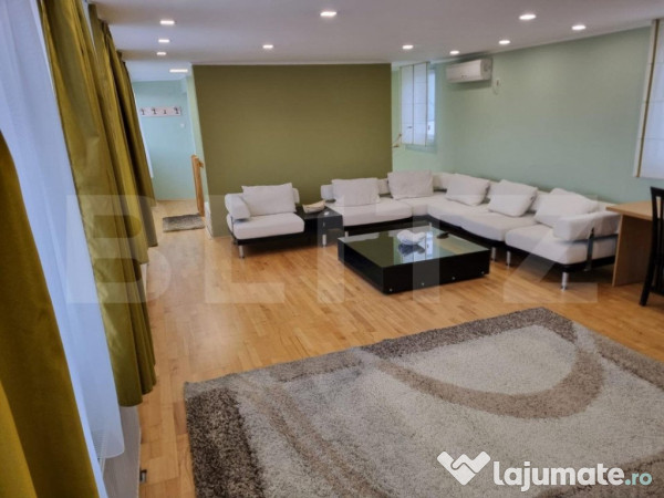 Esti in cautarea unei locuinte spatioase si moderne situata in centrul orasului? Blitz ofera spre inchiriere un apartament de 3 camere cu o suprafata utila de 140mp. Format din doua dormitoare, un living impresionant de spatios, doua bai, bucatarie, spatiu de depozitare, un hol lung si o terasa.