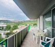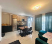 Compartimentarea apartamentului este urmatoarea: hol intrare, living cu bucatarie open space, 2 dormitoaree, baie si terasa de 32 mp, este dotat cu centrala proprie, incalzire in pardoseala, faianta moderna, gresie moderna, parchet laminat.