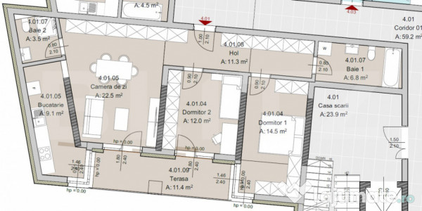 49 de apartamente cu 2, 3 si 4 camere, cu suprafețe între 52 și 104 mp, la care se adaugă balcoane și terase generoase – între 6,1 mp și 68 mp