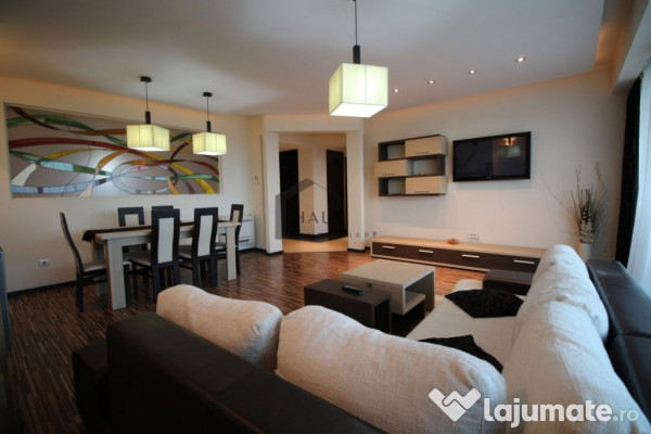 Haus imobiliare va prezinta un apartament de lux, elegant si rafinat! Compus dintr-un living generos cu semineu si zona vitrata mare , dining, bucatarie inchisa , doua dormitoare, doua bai ( una cu cada / una cu dus), dresing si spatii de depozitare multiple.