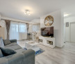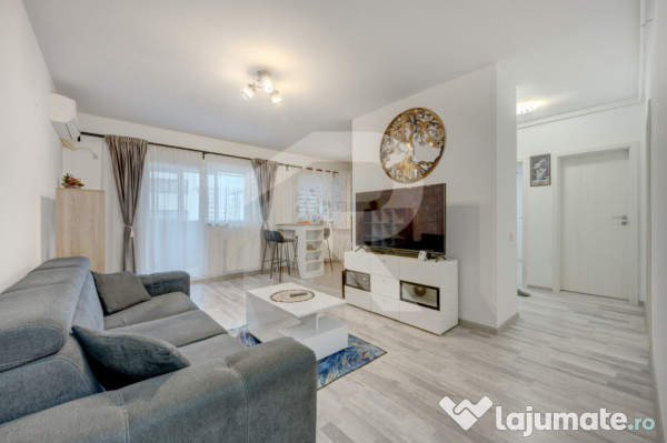 Apartamentul a fost achizitionat de la dezvoltator de catre actualii proprietari, are 72 mp si este compartimentat in felul urmator: sufrageria e deschisa cu bucataria si formeaza un spatiu de cca. 24 mp. Totusi, pentru cei care vor neaparat bucatarie separata de spatiul de zi, aceasta poate fi inchisa. Centrala termica este montata in bucatarie. Pe holul de acces spre cele 2 dormitoare a fost gandit spatiul pentru masina de spalat si uscator. O baie este dotata si cealalta baie are cabina de dus, asa ca o familie se poate descurca usor, fara cozi la baie dimineata. Balconul are aproape 11 mp si se intinde pe sufragerie, bucatarie si unul dintre dormitoare. A fost inchis de catre actualii proprietari cu geam termopan, avand astfel atat confort termic cat si fonic si iti poti organiza in el si spatii de depozitare suplimentare.