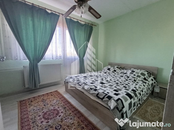 - Dormitor mobilat cu pat matrimonial si acces la balcon;