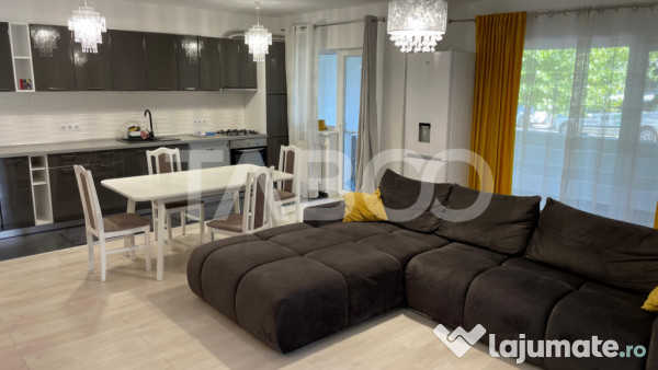 TABOO Imobiliare propune un apartament de inchiriat cu 3 camere, decomandat, situat in localitatea Sibiu, zona Piata Cluj, aflat la parter intr -un imobil tip bloc cu regim de inaltime pe Parter + 3 Etaje; anul constructiei 2020, structura caramida. Suprafata utila de 80 mp + balcon de , terasa de 12 mp.