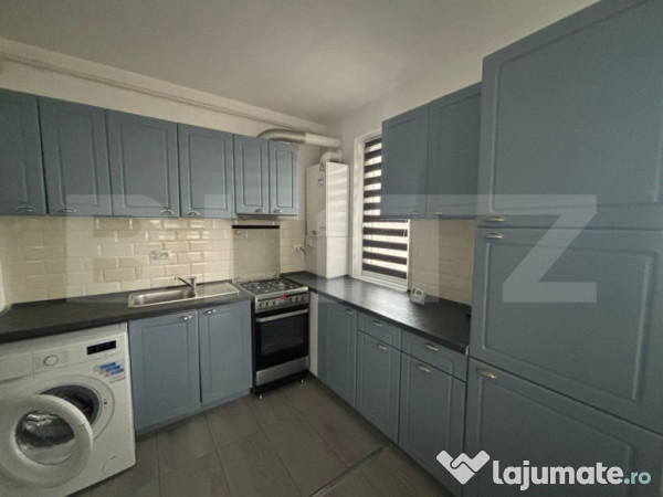 Compartimentare: living luminos, bucătărie complet utilată, două dormitoare confortabile, baie modernă