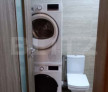 Echipată cu mașină de spălat, uscător de haine, baterie termostatată și panou din sticlă securizată pentru cada.