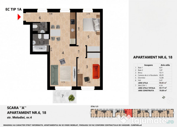 Mai este disponibilă o unitate locativă cu același plan, la etajul 3.