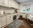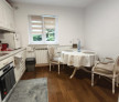 Bucătăria este un spațiu funcțional și estetic, mobilată cu gust cu mobilier din lemn masiv, oferind atât spațiu de depozitare generos, cât și un aspect cald și primitor.