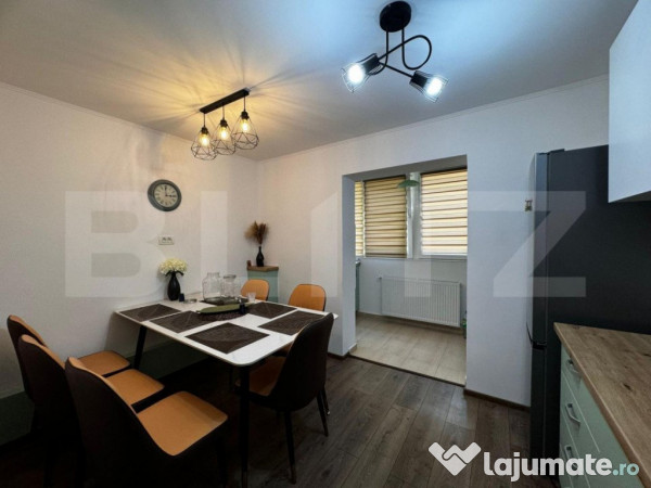 Blitz ofera spre vânzare un apartament modern, complet renovat, situat într-un bloc reabilitat termic, în zona Onestilor din Oradea. Apartamentul, cu o suprafață utilă de 90 mp, este ideal pentru o familie sau pentru cei care doresc un loc de trai confortabil și luminos.