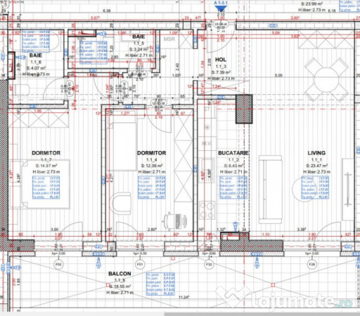 Apartamentul descris mai sus are o suprafata utila de 72.12 mp si un balcon de 18.55 mp - insumand o suprafata totala de 90.67 mp.