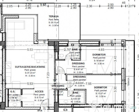 2 dormitoare matrimoniale, fiecare cu baie și dressing propriu
