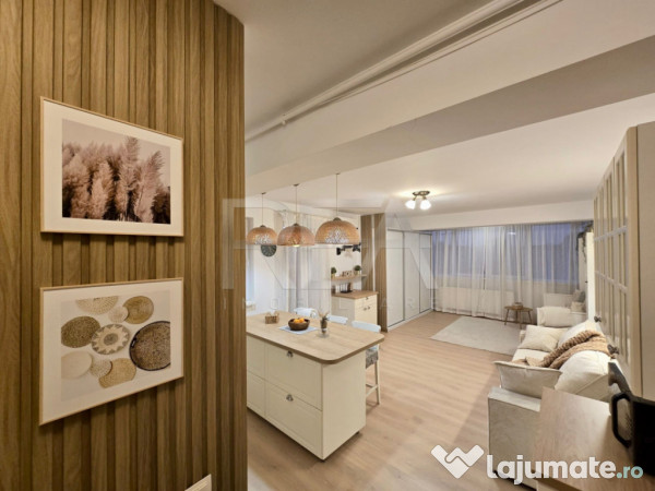 Apartamentul a fost renovat complet și se vinde mobilat și utilat, cu finisaje de calitate premium.