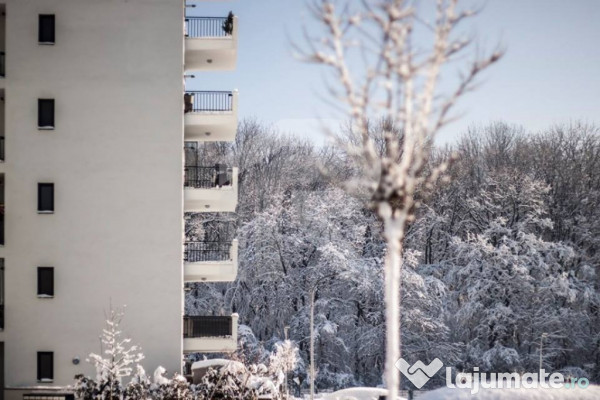 Balcon cu vedere deschisă către spațiile verzi ale cartierului