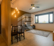 Living generos cu zonă de dining, acces pe balcon și lumină naturală din plin