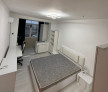 Dormitor matrimonial cu pat dublu, dulap mare și TV