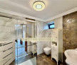Dispune de urmatoarele imbunatatiri si finisaje de lux: jacuzzi, marmura, parchet stratificat, faianta, usa intrare metalica, usi interior lemn, tamplarie PVC cu geam termopan tripan, stucco, video interfon. Incalzirea se realizeaza cu ajutorul centralei termice proprii, iar climatizarea cu ajutorul aparatelor de aer conditionat montate in fiecare camera.