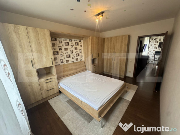 - apartamentul se vinde complet mobilat (cuier, dormitoare, bucatarie cu plita electrica, hota, cuptor, masina de spalat rufe Samsung, frigider Samsung, mini bar, TV Samsung)
