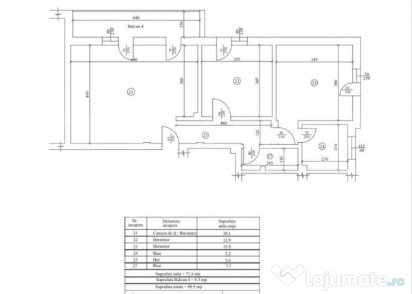 Blitz va propune spre achizite un apartament decomandat cu o suprafata total de 80.9 mp, din care 72.6 mp suprafata utila si 8.3 mp balconul. Imobilul este situat la etajul 3 al unui bloc cu 3 niveluri.