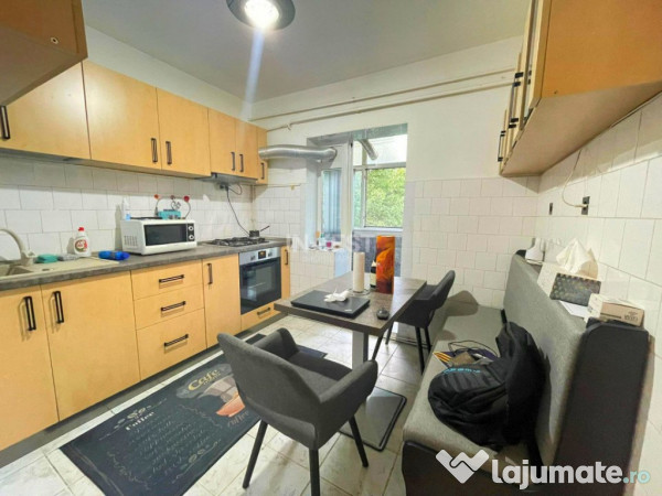 Apartamentul beneficiază de 2 băi, balcon generos de 10 mp, centrală termică proprie, geamuri termopan, geam la baie, parchet lemn masiv, ușa metalică.