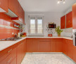Bucataria a fost deschisa cu cele 2 debarale, astfel ca a fost obtinuta o bucatarie de aproape 9 mp si a fost mobilata foarte practic, cu multe spatii de depozitare dar si un loc in care sa iti faca placere sa stai.