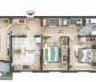 Suprafata utila de 83 mp a acestui apartament are o compartimentare total decomandata astfel: 1 living generos de 20 mp cu suprafete vitrate mari cu iesire pe balconul de 9 mp, 1 bucatarie inchisa de 14 mp, 1 dormitor matrimonial de 14 mp foarte luminos, 1 dormitor de 12 mp, 1 baie de 7 mp cu geam de aerisire si un balcon retras de 3 mp, 1 baie de serviciu de 2 mp, 1 hol spatios de 12 mp la intrare care face ca locuinta sa fie decomandata.