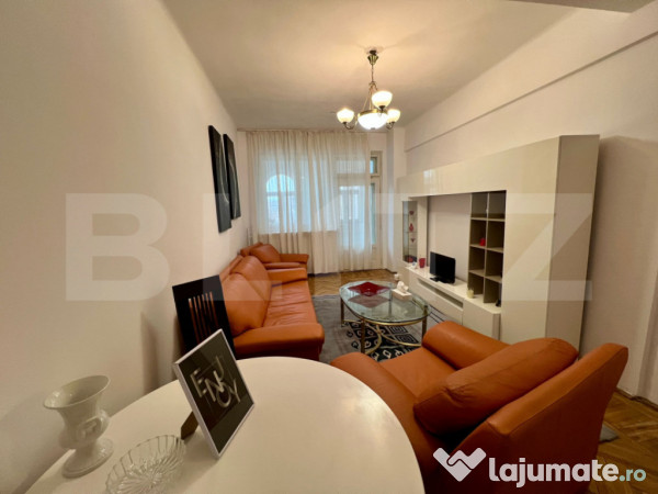 BLITZ va propune spre inchiriere un apartament cu 2 camere, situat în zona centrala. Cu o suprafață generoasă de 56 de metri pătrați, acest apartament se află la etajul 4 al unui imobil 4 nivele, oferind un spatiu generos si luminos, amenajat cu bun gust. . Apartamentul este echipat cu o centrală termică si aer condiționat, asigurând un climat confortabil în orice sezon al anului. Complet mobilat și utilat, acest apartament este pregătit să vă întâmpine cu toate facilitățile necesare pentru a vă face să vă simțiți ca acasă încă de la prima zi. Acest spațiu rafinat și funcțional este alegerea ideală pentru un stil de viață urban și confortabil si este disponibil imediat. Animalele de companie nu sunt acceptate. Va asteptam cu drag la vizionare!