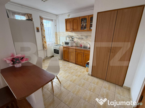 Blitz pune la dispoziție pentru vanzare un apartament cu 3 camere. Acest apartament beneficiază de proximitatea față de stațiile de autobuz, magazine, farmacii, scoala/ gradinita, zone verzi. Amplasat la etajul 2 al unui imobil cu regim de înălțime P+3, finalizat în anul 2004, apartamentul are o suprafață utilă de 60 metri pătrați cu acces de pe doua strazi,. Compartimentarea acestuia constă în următoarele: hol, dressing/debara generos, living+ bucătărie, 2 dormitoare, baie cu geam si un balcon de 6mp. Apartamentul se vinde conform pozelor.