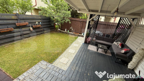 Locuința se află la parterul unui bloc bine întreținut și oferă intimitatea și avantajele unei case, cu spațiu verde propriu și acces direct din exterior.