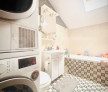 Luminozitate Naturală: Apartamentul este scăldat în lumină datorită ferestrelor pe colț și a ferestrelor tip Velux, creând o atmosferă caldă și primitoare.