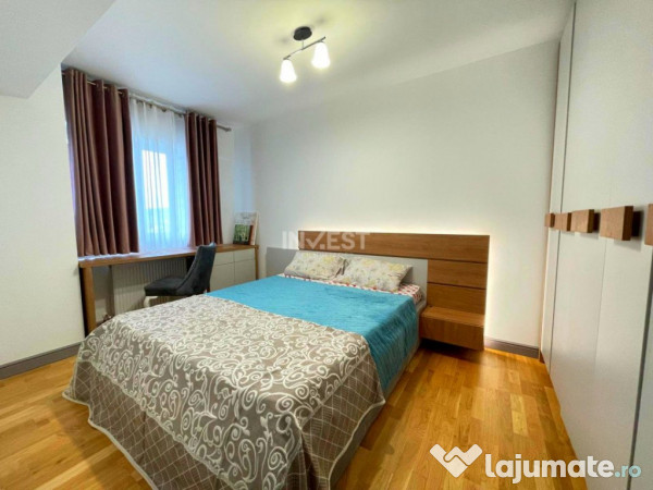 Apartamentul beneficiază de finisaje premium: mobilier din MDF și lemn masiv, geamuri termopan cu 3 randuri de sticlă, parchet de calitate superioară, gresie și faianță moderne. Confortul termic este asigurat de centrala proprie și aerul condiționat, pentru a te bucura de un ambient plăcut pe tot parcursul anului.