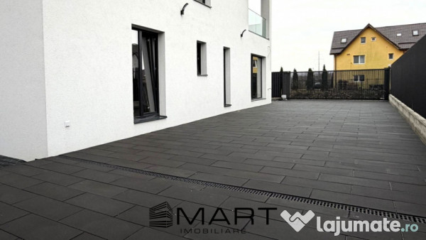 Apartament dispune de o suprafata utila de 115mp, un teren de 200mp din care 173mp curte, o terasa de 18,5mp si 2 locuri de parcare.