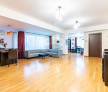 Apartamentul are o suprafață utilă de 119 mp la care se adaugă terase și o logie acoperită de 9,5 mp. Compartimentarea este optimă: living spațios și luminos cu bucatarie open-space de 55 mp, trei dormitoare de 12, 15 și 19 mp, două băi, dressing și bucătărie cu zonă de dining. Înălțimea camerelor de 2,70 m și ferestrele mari pe trei laturi (sud, vest, nord) aduc multă lumină naturală.