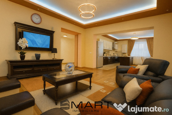 Smart Imobiliare propune spre inchiriere un apartament deosebit cu patru camere decomandate situat la etajul I al unei vile din zona Turnisor.Apartamentul are o suprafata utila de 160 mp si se compune din: hol, trei dormitoare, living open space spatios cu bucatarie si loc de servire a mesei si doua bai.