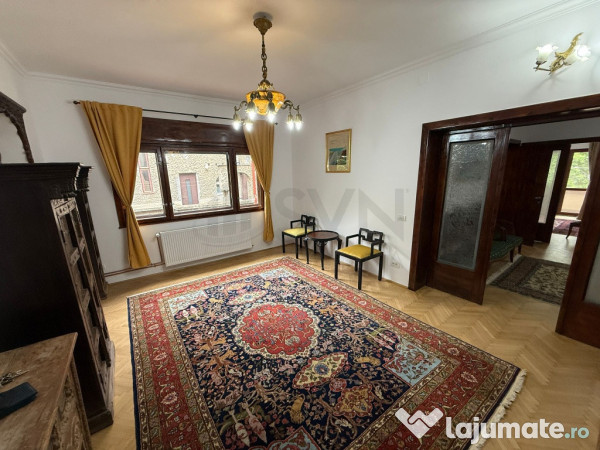 REA1023712 SVN Residentialist va propune spre inchiriere un apartament de 5 camere situat intr-o vila interbelica, chiar langa Bulevardul Stefan cel Mare. Apartamentul este luminos, se afla la etajul 1 si pastreaza farmecul cladirilor cu istorie. Toate camerele sunt spatioase, ideale pentru birouri, iar cele doua bai si centrala proprie asigura confortul necesar. Cu un aer elegant si amplasat intr-o zona accesibila, apartamentul este perfect pentru un cabinet de avocatura sau activitati profesionale ce necesita spatiu si prestigiu.