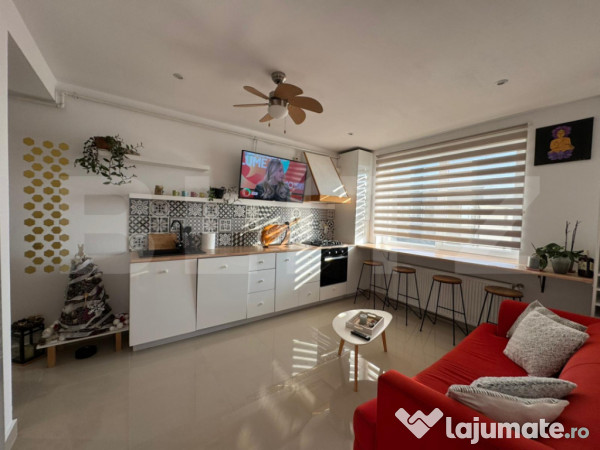 Oportunitate pentru investitie! Blitz ofera spre vanzare apartament cu 3 camere, pozitionat intr-un imobil construit in anul 2019, la etajul 3 din 3. Are 3 camere semidecomandate, cu o suprafata de 50mp si este compartimentat astfel: bucatarie spatioasa cu living, 2 dormitoare, baie si 1 balcon deschis cu priveliste. Amplasarea lui face ca acest apartament sa fie o investitie perfecta la doar 2 minute de strada principala, la 1 minut de la centura ocolitoare, la 5 minute de statia de bus, magazine, restaurant si farmacii. Apartamentul este finisat modern si se vinde dupa cum se vede in poze, cu frigider, masina de spalat vase, masina de spalat rufe cu uscator, bar din lemn masiv si mobila facuta la comanda. Parcarea se poate lua direct de la constructor! Pentru mai multe detalii sau pentru a stabili o vizionare, nu ezitați să ne contactați!