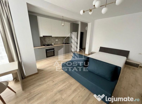 APOSTU ESTATE va propune spre inchiriere un apartament modern si complet utilat, cu 1 camera, situat in zona Torontalului din Timisoara, ideal pentru cupluri sau profesionisti care cauta confort si acces rapid catre punctele cheie ale orasului.
