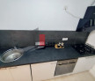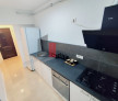 Bucătărie modernă, complet mobilată și utilată (frigider, cuptor, plită pe gaz, hotă, mașină de spălat)
