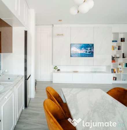 Blitz are prilejul sa va prezinte spre vanzare un apartament care face parte dintr-un ansamblu rezidential privat, ultramodern si ultrasecurizat. Acesta are suprafata construita de 103,46 si o suprafata utila de 5230 mp. View-ul acestuia este superb. Printre multele facilitati pe care le ofera, acestea sunt- acces cu videointerfon , poarta securizata si acces cu telecomanda si tag, finisaje premium cu gresie si faianta calitatea 1, usa de acces cu usa blindata import Italia baie complet mobilata cu obiecte sanitare import Italia, usi interior gama Royal Coco Tinoli, geamuri tripan cu microventilatie si sistem antiefractie, incalzire in pardoseala Tece, centrala termica prin condensare Daikin, aparat de aer conditionat Daikin cu wifi integrat cu inverter, video interfon smart, incalzire in pardoseala, contoarele de gaz si apa sunt amplasate pe casa scarii si sunt integrate in mobilier sp, hidroizolatie Mapei, sistem de instalatii sanitare Tece, pe terasa avem hidroizolatie Mapei, izolare cu polistiren superior si inferior, faianta usor de intretinut, gresie antiaderenta import Italia cu inclinatie exterior, balustrada cu 3 picuratori, corpuri de iluminat cu led. Constructia imobilului are structura cu rezistenta de beton armat in cadre si armaturi, termoizolatie cu polistiren, la parter este realizat un strat dublu , fatada este finisata cu tencuiala decorativa siliconica, lift, clasa energetica A. Ansamblul detine statii de incarcare masini electrice, boxe subterane pentru depozitare, parcare supraterana si subterana, complexul este securizat, are sistem de irigare externa cu sistem prin picurare, spatii verzi de agrement si de recreere. Pretul este aferent modalitatii de achitare integrala.