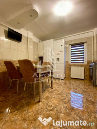 Se vinde complet mobilat și utilat, exact ca în poze, centrala proprie și aer condiționat. Apartamentul se afla cu orientare spre spatele blocului. Blocul se afla într-o zona liniștita, având în apropiere toate punctele de interes: scoli,gradinite,parcuri, magazine alimentare,piete, stații pt toate mijloacele de transport în comun, secție de politie. Spitalul județean, Mc Donalds și stadion la 5 minute.