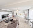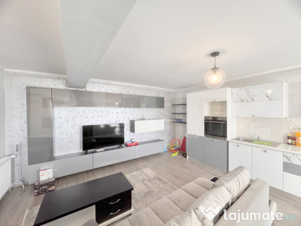 Living generos: spațiu deschis, mobilat modern, perfect pentru relaxare și socializare.
