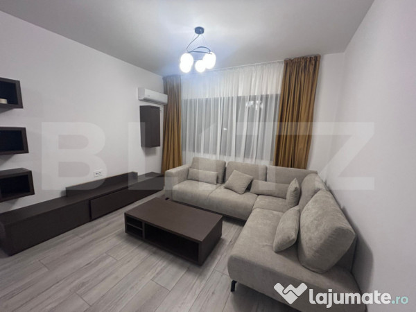 Dotat cu un televizor smart, apartamentul devine un spațiu de relaxare ideal, unde poți urmări emisiunile și filmele preferate. Bucătăria este echipată cu o plită si un cuptor electric, iar utilitățile includ o mașină de spălat rufe, facilitând gestionarea activităților zilnice.
