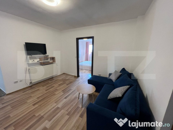 Blitz va propune spre inchiriere un apartament cu 2 camere, semi-decomandat, intr-un bloc nou situat pe bld Nicolae Tiulescu in zona Sweet Escape. Imobilul dispune de centrala termica pe gaz, aer conditionat, Smart TV, aragaz, frigider, masina de spalat si toate cele necesare traiului zilnic asigurand confortul traiului zilnic. In imediata apropiere putem gasi Hipermarket Auchan, Promenada Mall, sali de fitness, banci, farmacii si clinici medicale, restaurante si baruri. Accesul la mijloacele de transport in comun este unul facil iar in apropierea imobilului se afla si statii de taxi.