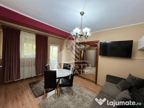 Apostu Estate va propune spre inchiriere un apartament semidecomandat cu 2 camere aflat in zona Lipovei. Apartamentul a fost renovat complet si este situat la etajul 1 in cadrul unei vile cu acoperis de tigla, cu curte privata de aprox 100 mp.