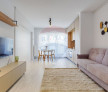 Apartamentul are o structură interesantă având posibilitatea de a avea un open space generos sau prin coborârea peretului mobil un studio elegant. Cu suprafață utilă de 49 mp mobilat și utilat cu mult bun-gust, cochet și elegant cred că va satisface nevoile viitoriilor chiriași cu brio. Terasa, poate fi accesată din bucătărie.