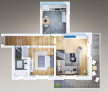 Compartimentare practică, cu 2 camere luminoase